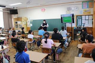 今日は1・2年生の計5クラスで行われました。下の写真のとおり、子どもたちは、食い入るように聞いていました。再開していただいて本当にありがたいです。今後もよろしくお願い致します。