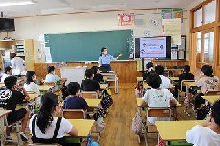まず、コミュニケーションアプリにおけるトラブルやSNSでのトラブルなどのお話を聞きました。その後、SNSに写真をアップロードしたり、嘘の情報をアップロードしたりすることの危険性をドラマにしたDVDを鑑賞しました。