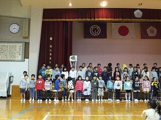 校長先生の話では、戌年にちなんで、「お・いぬ・く」という話がありました。今までの自分を「おいぬいて」、さらなる成長を目指すよう励ます話に、子ども達も気持ちを新たにしたようで、「はい」という元気な反応が響き渡っていました。2学期終業式