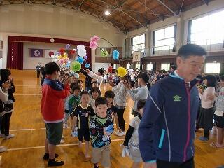 1年生を迎える会(4月24日)では、2年生は、遊び、3年生は、勉強、4年生は、遠足、5年生は、給食、6年生は、あいさつのことを1年生に教えてくれました。1年生は、『1年生になったら』の歌を元気に歌ってくれました。1年生が入学して旭小学校は、498名になりました。みんなで元気で楽しい旭小学校にして行きましょう。
