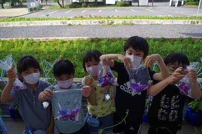 アサガオ色水づくりの準備 投稿日時 : 2022/07/12 情報管理者 令和4年7月12日(火)、1年生がアサガオの花をつんでビニール袋に・・。色水づくりに使うようです。アリさんが巻き込まれないようにちゃんと逃がしてやっていました。 Tweet