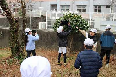 冬の自然を探そう 投稿日時 : 2024/01/10 情報管理者 4年生が理科の学習で、数人グループになり、運動場周辺の散策をしていました。「冬の自然を探そう」の学習だそうです。昆虫はほとんど見つけられなかったようですが、膨らみ始めた桜のつぼみやサザンカの花、シロツメグサなどの植物を見つけて、タブレットを用いて写真を撮っていました。 Tweet