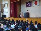 児童代表の作文発表では、1年生、3年生、5年生の代表児童が、夏休みの思い出や2学期にがんばりたいことを、はっきりとした大きな声で発表することができました。