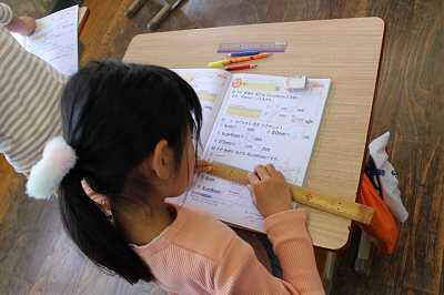 先週から今週にかけて、授業改善のための研究授業を行いました。2年生はものさしを使って示された長さの直線を書く(8cmや12cm5mmなど)学習でした。1年生はおはじきを使って、10は、いくつといくつ(10は6と4,10は2と8など)かを考える学習でした。3年生は3桁の数の筆算で繰り上がりが⒉回ある計算(265+178,538+267など)の学習でした。