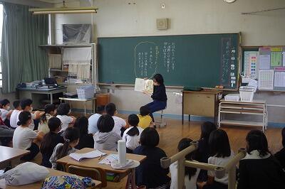 令和4年10月24日(月)、3年生から6年生の教室で、読み聞かせをしていただきました。子供たちは食い入るように聞いていました。