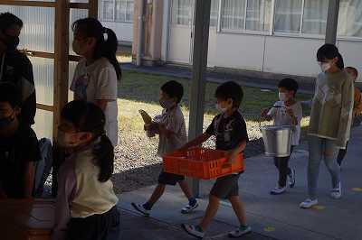 給食の片づけ(1年生) 投稿日時 : 2022/10/19 情報管理者 1学期は全部6年生にやってもらっていましたが、2学期から、給食の片づけは1年生が自分たちで行っています。6年生に見守られながらですが、上手に片づけています。給食室への無言お辞儀もきとんとできています。 Tweet