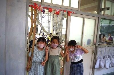 令和4年10月7日(金)、2年生の図工は「つないで つるして」という単元で、新聞紙をつかった造形遊びをしていました。