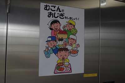 下記の写真は、「ごめんなさい」と謝っているのではありません。給食当番が食器等を片付けに給食室に来た際に、無言で「ごちそうさまでした」と調理員さん方に頭を下げている様子です。
