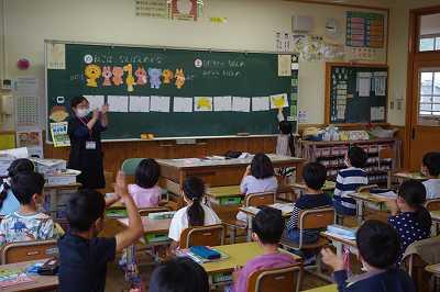 3時間目は3の2の国語の授業。相手の話を聞いて自分がさらに知りたいことを尋ねたり、話を広げるための質問をしたりすることができるようになるのがねらいです。途中からワークシートを使わずに質問したりするなど、難易度を少し上げることで、子ども達は更に意欲的に取り組んでいました。難易度を少し上げると意欲が増すのは、ゲームやスポーツと同じですね・・・。
