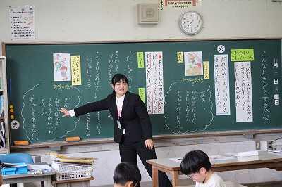 本校の卒業生が2年1組で教育実習をしています。今日、道徳の研究授業を行いました。実習生はもちろん、2年1組の子どもたちも、はりきって考えたり、話し合ったり、発表したりしていました。よい雰囲気で授業が展開されていました。