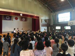 児童からは、「今日の演奏で楽器に興味をもった。」や「音楽はみんなを笑顔にすることができると知りました。」といった感想があり、有意義な時間になりました。劇団220