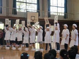 1年生を迎える会(4月24日)では、2年生は、遊び、3年生は、勉強、4年生は、遠足、5年生は、給食、6年生は、あいさつのことを1年生に教えてくれました。1年生は、『1年生になったら』の歌を元気に歌ってくれました。1年生が入学して旭小学校は、498名になりました。みんなで元気で楽しい旭小学校にして行きましょう。