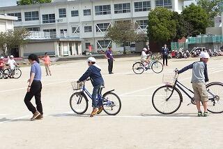4月25日火曜日に、運動場で交通教室が実施されました。延稜自動車学校の指導員の方5名が、安全な歩行の仕方と正しい自転車の乗り方を指導して下さいました。2校時が高学年、3校時が低学年、4校時が中学年の時間でした。ダミー人形を使った実験を通して安全確認の大切さを学びながら、それぞれの学年ごとに交通安全の意識を高めることができました。