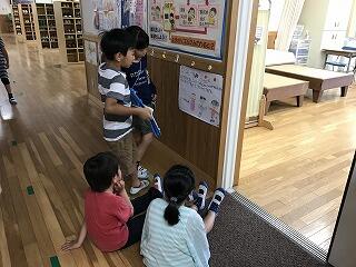 5月13日土曜日に、1年生と2年生で学校探検を行いました。事前準備では、2年生が学校のいろいろなところにポスターを作成して掲示しました。当日は、2年生が中心となり、職員室、給食室、図書室など、学校のいろいろなところを1年生に教えて優しくあげていました。1年生もしっかりと2年生についていき、普段行かない中校舎や北校舎の様子をよく見ることができました。