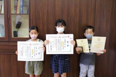 最後に、ピアノコンクールや愛鳥週間作品(書道)の入賞の3人の表彰を行いました。