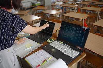 ○ 3年生から6年生は、本日タブレットを夏季休業中と同じように持ち帰らせました。そのタブレットを使って、家庭と学校をつないでオンライン授業を行います。