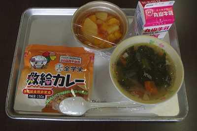 令和4年9月15日(木)の給食は、災害非常食として学校に備蓄している「救給(きゅうきゅう)カレー」を更新消化を兼ねて食べました。毎年この時期に行っています。