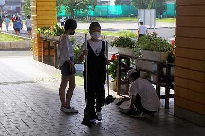 令和4年9月20日(火)、今日は朝から6年生が玄関前を掃いたり、運動場に落ちている木の枝を集めたりしてくれていました。