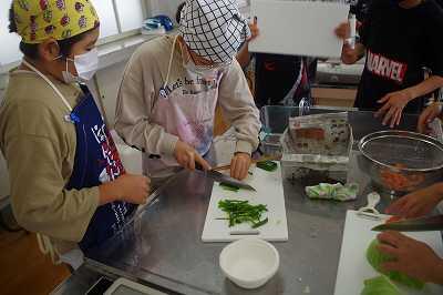 令和4年11月2日、4日、学校としては久しぶり、6年生にとっては初めての家庭科調理実習を行いました。慣れた手つき、慣れない手つき、堂々と、怖々と、野菜炒めを作っていました。