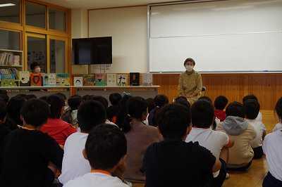 令和4年11月14日~15日の2日間、1年生から6年生まで、計6回、「ととろ三人の会」の方々による絵本の読み聞かせ等を行っていただきました。どの学年の子どもたちも、お話の中に引き込まれている表情でした。