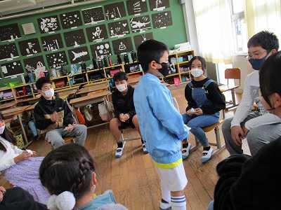 一緒に「ととろ三人の会」の方々の読み聞かせを聞いたり、各学級に入って一緒に学習したりしながら楽しく交流し、あっという間に時間が過ぎていきました。