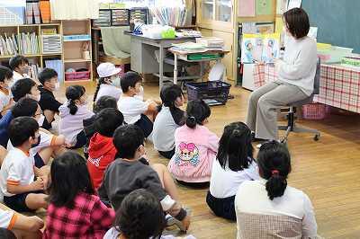 下の写真のように、絵本の読み聞かせの時は、子どもたちは完全に本に親しんでいます。ご自宅でも、読み聞かせしてみましょうよ。