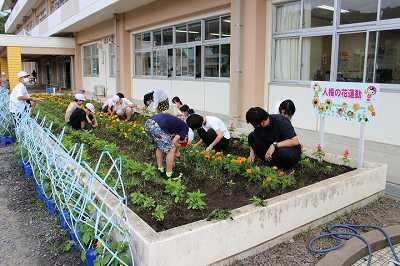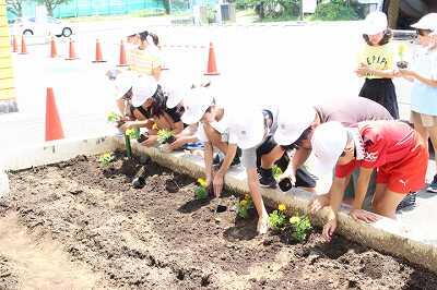 昨日の午後から今日にかけて、梅雨の間の晴れ間を利用して、多くの学級で学級園の花の植え替えをしていました。今回は、夏の花として、ミニひまわりやマリーゴールド、ホウセンカ、サルビア、ニチニチソウなどを植えました。苗は技術員の先生が育ててくださったものです。植え方を担任の先生に教えてもらって、丁寧に植えていました。