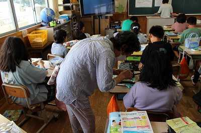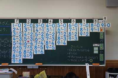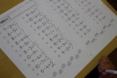 1年生がひきざんの学習をしていました。プリントや計算カードなどを使って、練習をしていました。