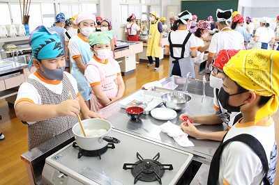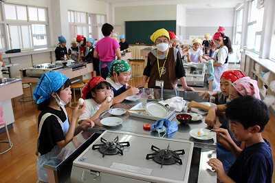 5年生が調理実習をしました。ゆで卵を作りました。はげまし隊の方々にもお手伝いをしていただきました。タイマーで沸騰時間を計り、どの班もおいしそうなゆで卵が完成していました。後片付けもしっかりできていました。