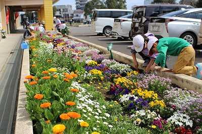 南校舎の前や中庭近辺にある学級の花壇(学級園)のお花が、見頃を迎えています。学校技術員の先生が秋に種をまき、苗を育て、子どもたちが育った苗を学級園に植えたものです。自分たちで、雑草をぬいたり、水をあげたりしてお世話をしてきました。学校に来る機会があったら、見てください。