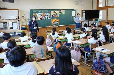 4年生が、非行防止教室を行いました。延岡警察署の方からのお話もありました。今回は、「万引き防止」に関する内容でした。4年生は、真剣に話を聞き、発表をしていました。