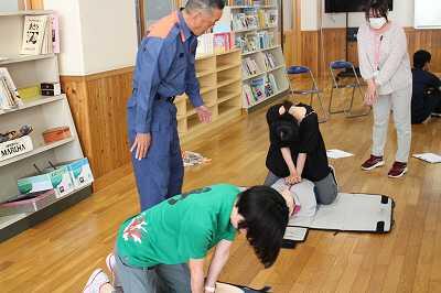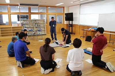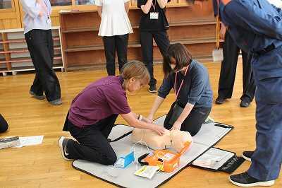 来週はプール開きです。それを前に、昨日、職員対象の救急救命の講習会を実施しました。延岡市消防署から講師の先生をお招きして実施しました。毎年実施している講習会で、先生方は、真剣に心肺蘇生法の練習やAEDの扱い方の確認をしていました。