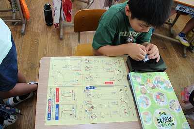「家庭科」の学習が5年生から始まります。5年生は現在、縫い物の学習をしています。針に糸を通すところから苦労していますが、「玉結び」「玉留め」「なみ縫い」等を学習しています。「はげまし隊」の方の協力も頂きながら、練習布の印に添って、一針、一針、丁寧に縫っています。