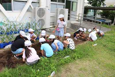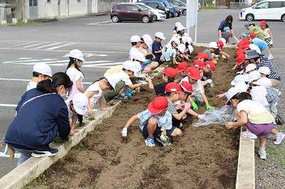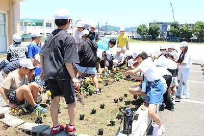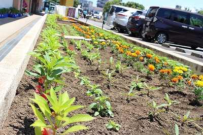 学級の花壇の、夏から秋にかけて咲く花への植え替えが、ほぼ終了しました。花の苗は、本校の学校技術員の先生が育てました。マリーゴールドやセンニチコウ、ヒマワリなどです。2,3週間前から色々な学級が植え替えをしていました。
