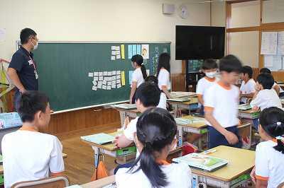 本日、延岡市のALT(外国語指導助手の先生方)が、本校に集合して、研修を行いました。5、6年生と英会話をしたり、1~6年生の全教室に分散して給食を食べたり、昼休みに一緒に遊んだりしました。子どもたちはALTに積極的に話しかけ、コミュニケーションをとっていました。