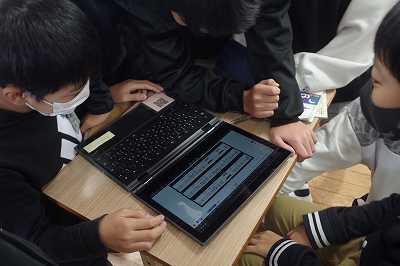 授業の場所が多目的室だったことやたくさんのお客さんが来られていたことなどから、子どもたちはいつもより緊張していたようでしたが、「工夫しながら、小学校生活の思い出を伝え合う」という活動を、途中タブレットをつかって自分の表現を振り返ったりしながらがんばっていました。
