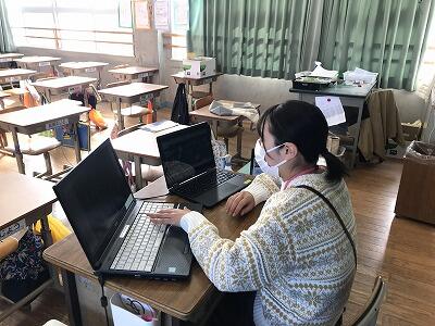 令和4年12月16日(金)、5年生はこの日はリモートで授業を行いました。1組は、初めて担任以外の担当が英語や理科の授業をリモートで行いました。