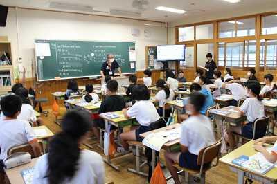 昨日と本日、授業改善のための研究授業17,18,19を行いました。1年生は、バスに人が乗ったり下りたりすることをみて、数図ブロックを数えながら、「ふえたりへったり」することを学んでいました。4年生の理科では、回路を流れる電流の向きやモーターの回る向きを予想したり、実験をして確かめたりしていました。5年生の算数では、立式をして、小数で割る計算(96÷2.4など)の意味について考えていました。