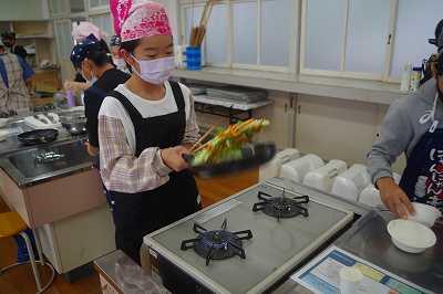 令和4年11月2日、4日、学校としては久しぶり、6年生にとっては初めての家庭科調理実習を行いました。慣れた手つき、慣れない手つき、堂々と、怖々と、野菜炒めを作っていました。