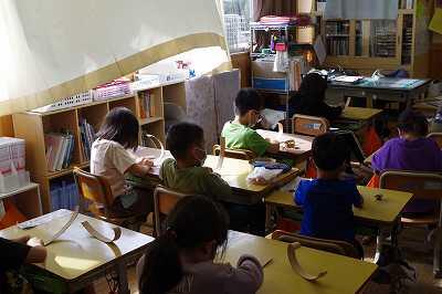 一緒に「ととろ三人の会」の方々の読み聞かせを聞いたり、各学級に入って一緒に学習したりしながら楽しく交流し、あっという間に時間が過ぎていきました。