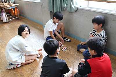 今日は雨は降っていませんでしたが、運動場がぬかるんでいたため、子どもたちは昼休みに教室内で過ごしました。今回は北校舎(2年生と5年生)の各教室を回ってみました。カードゲームやオセロ、おしゃべり、新聞作りなどをしていました。