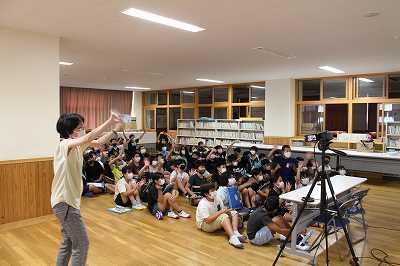令和4年7月28日(木)、体育館で6年生が5年生に「新新ばんば踊り」を教えていました。運動会で5年生が毎年踊っているようです。6年生も、まだちゃんと覚えていて、上手に教えていました。