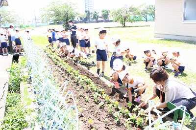 昨日の午後から今日にかけて、梅雨の間の晴れ間を利用して、多くの学級で学級園の花の植え替えをしていました。今回は、夏の花として、ミニひまわりやマリーゴールド、ホウセンカ、サルビア、ニチニチソウなどを植えました。苗は技術員の先生が育ててくださったものです。植え方を担任の先生に教えてもらって、丁寧に植えていました。