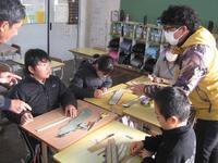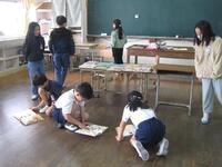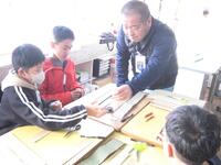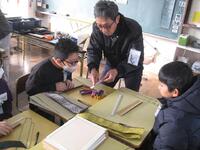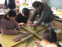 5年生が畳工芸と広告美術の2つ職種に分かれて、ものづくりを体験しました。それぞれ時間いっぱい黙々と作業に取り組んでいました。