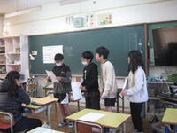 修学旅行や運動会のことを英語で発表しました。英語で自分の思いを伝えるには、難しいのですが、一人一人自分の気持ちを伝えたり、みんなに尋ねたりしながら、堂々と発表しました。