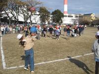 運動会の赤、白に分かれ、低学年、中学年、高学年の3つのコートで楽しみました。一つ上の学年のボールを受け取ろうとはりきったり、一つ上の友達に当てようと狙って投げたりして楽しみました。受け取るのは苦手でも、上手にホールを避けてコートを走り回って楽しんでいる姿も見られました。