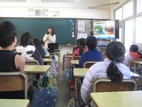 授業の10分前に3年生の子供たちと出会い、新聞を使ったお話などで、心をつかみ、授業を行いました。3年生は、とても生き生きと授業に取り組みました。詩の言葉から、情景を読み取ったり、思い描いたりして、詩について学びました。そのため、詩の音読が最初とは、全く異なり、声の大きさ、強さ、速さなど、情景が浮かんでくるようになりました。これからの学習にいかしてくれることでしょう。