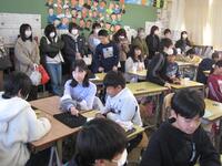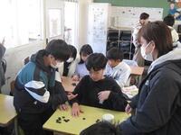 6年生は、保護者と「算数的」な要素を取り入れた碁石を取り合う対戦ゲームをすることで、保護者ともふれあいながら、算数の良さや順序立てて考えることの大切さなどを学ぶ授業参観をしました。