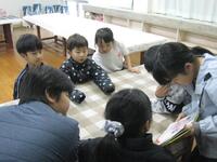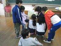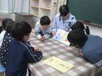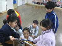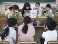 12/19(金)に3年生が国語科「1年生へおすすめの1さつをしょうかいしよう」の学習で1年生に読み聞かせをしました。3年生が8グループに分かれて、それぞれ1年生に読み聞かせたい本を選び、練習をして、本のクイズや手遊びなども取り入れ、楽しい読み聞かせをしました。