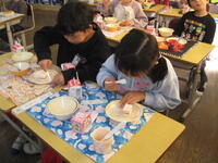 8月25日(月)にPTA家庭教育学級で『絵本に出てくるパン作り講座』を行いました。この講座は、社会教育センターの調理室で「ベーカリー原田」の原田克彦 店長を迎えして実施しました。参加者は、児童、保護者合わせて21名でした。絵本の読み聞かせがあり、その絵本に出てくるパン作りに保護者と子供たちが協力して挑戦しました。